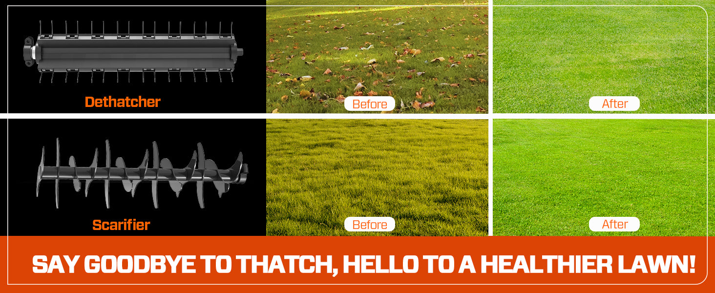 - Dethatch Height 0.4" + 24 Spring Steel Tines