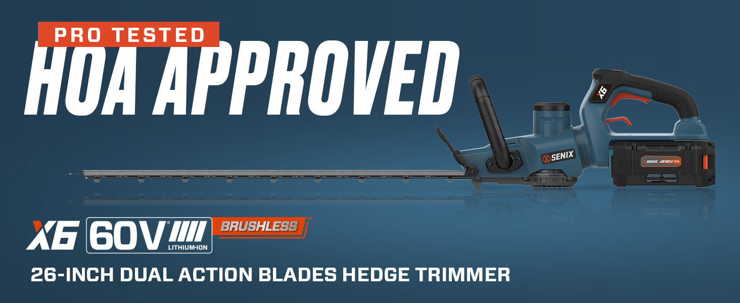 Maximize your cutting performance with the X6 60V Max Cordless 26-inch Dual Action Blades Hedge Trimmer. These laser-cut stainless steel blades provide unmatched sharpness and durability, with a cutting capacity of up to 1-¼-inches thick branches. Additionally, the powerful 60V brushless motor delivers up to 3,400 strokes per minute for fast and efficient trimming. With the ECO Mode, you can extend battery life and optimize run time, while the 180-degree rotating handle with 5 positions allows for maximum ergonomics and control during use. Plus, with our 5-year limited warranty on the tool and 3-year limited warranty on the battery and charger, you can trust in the durability and quality of our product.