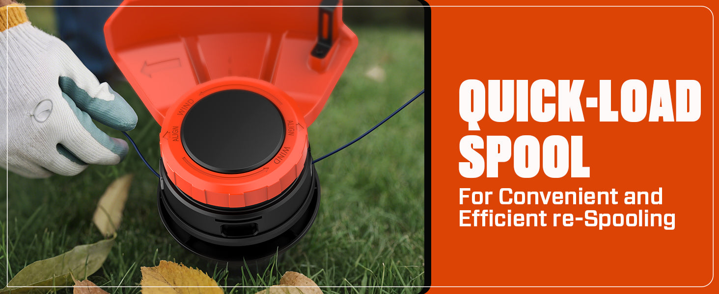 The quick line load feature makes replacing trimmer line fast and frustration-free — just feed the line, twist the head, and you're back to work in seconds. No more wasting time fumbling with spools or disassembling the head.