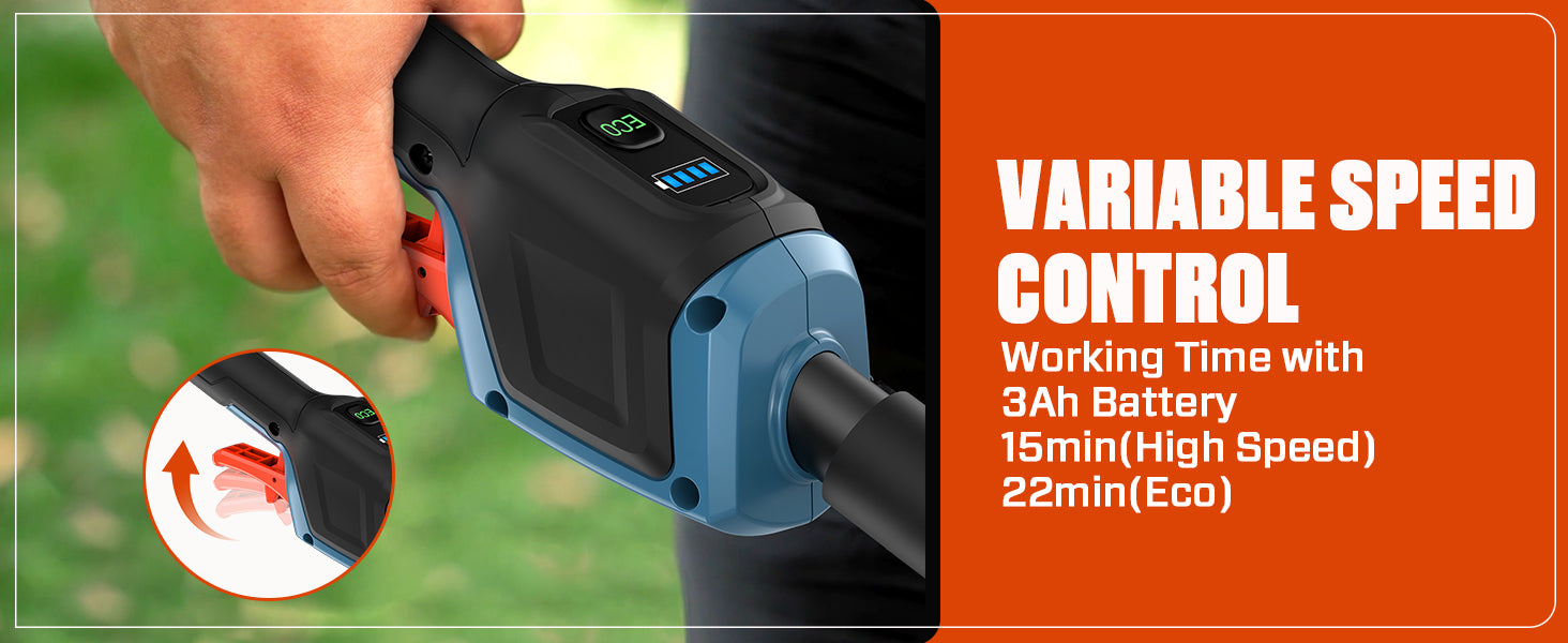 The variable speed trigger on the SENIX 60V String Trimmer gives you precise control over cutting power, letting you dial it down for light trimming or ramp it up for thick, overgrown areas. This not only improves efficiency and battery life, but also reduces wear on the tool when full power isn’t needed.