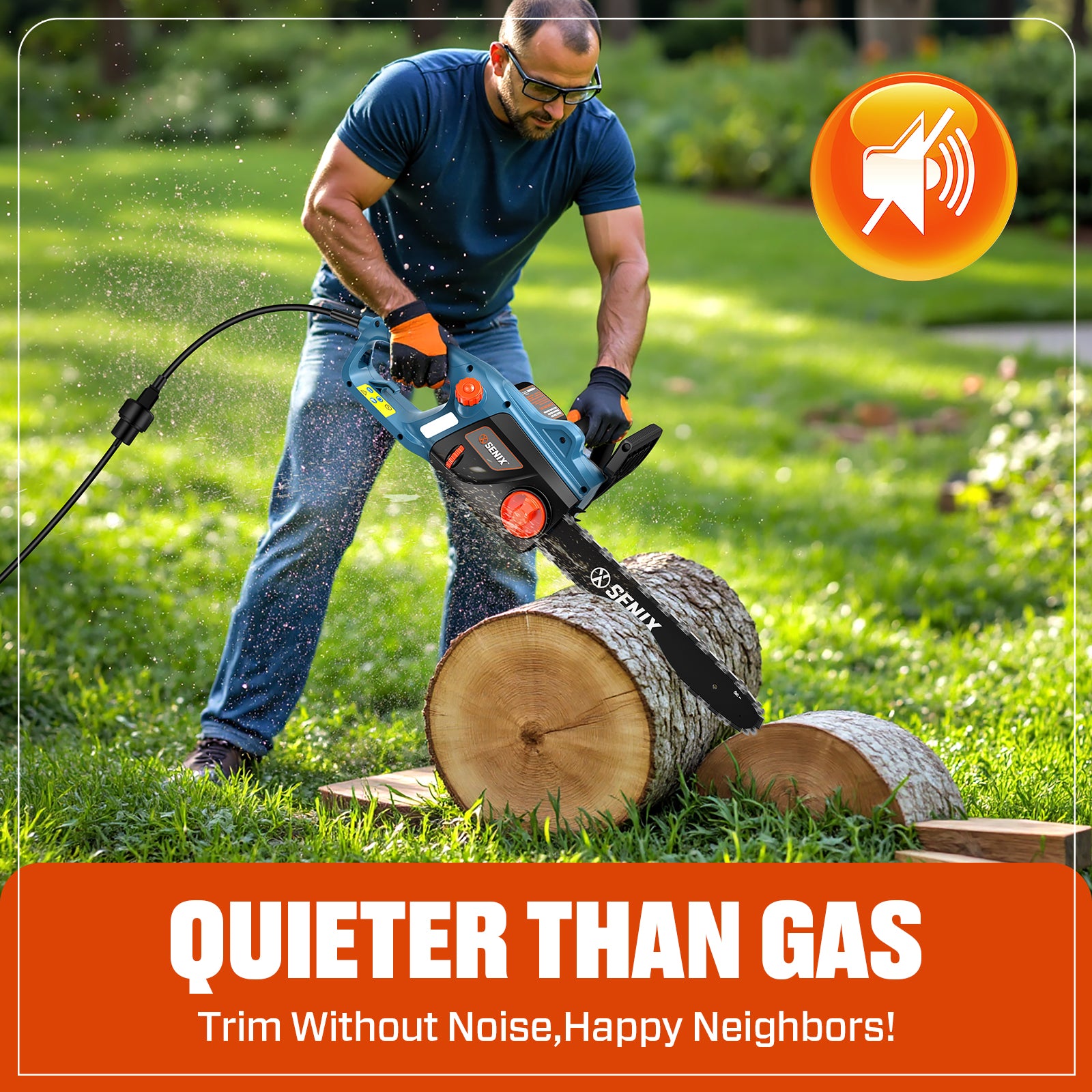 The SENIX CSE15-M 15 amp corded chain saw features an 18-inch Oregon bar and chain for smooth cutting and a tool-less chain tensioning system to easily keep the chain properly adjusted. The auto oiler provides continuous lubrication to the bar and chain to ensure high-performance, trouble-free cutting. The chain brake stops the chain in the event of kickback to provide an extra measure of safety to the operator. All SENIX corded handheld products are backed by our 3-year limited warranty for your peace of mind.