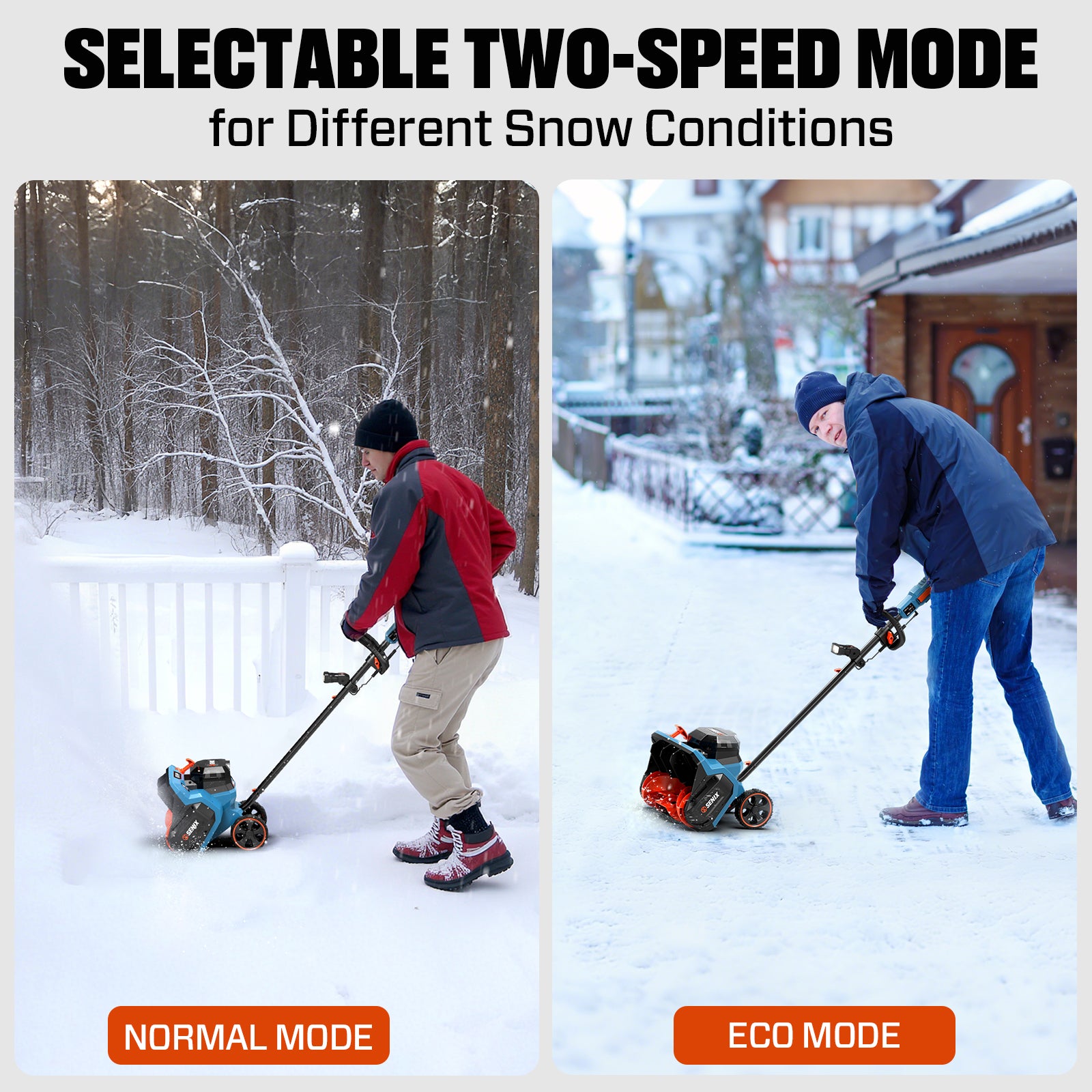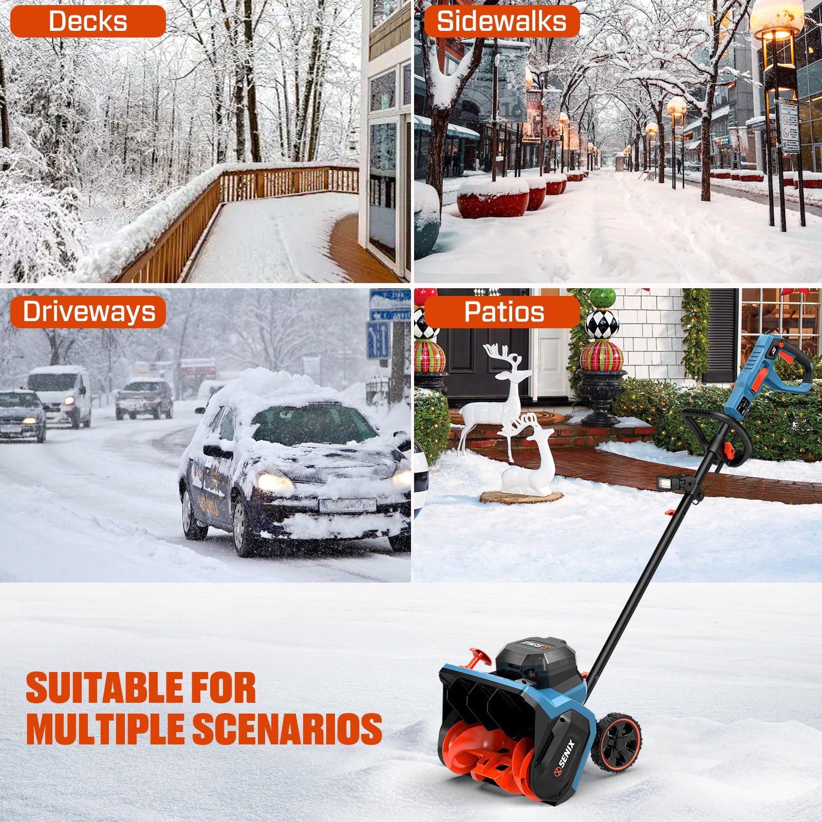 The SENIX X6 60V Max* 15" Brushless Cordless Snow Shovel combines power, control, and convenience to help you conquer winter with ease. Fueled by the X6 HYPERCORE™ battery system, this high-performance tool delivers up to 600 lbs/min of snow-clearing force and throws snow up to 30 feet, all while operating efficiently with intelligent power management that extends runtime and battery life. The 15-inch clearing width makes it ideal for decks, sidewalks, and small to mid-sized driveways, while the adjustable louver lets you direct snow placement on the fly. With two auger speeds, you can toggle between max power for heavy snow or longer runtime for light conditions. Designed for comfort and control, it features an ergonomic handle, adjustable shaft, and built-in wheels for smooth maneuvering. An integrated LED light improves visibility in low-light conditions, and the shovel is fully compatible with the SENIX X6 60V battery platform, making it a smart addition to your outdoor power tool lineup. Backed by a 5-year limited tool warranty and 3-year battery and charger warranty, this cordless snow shovel is built to perform and made to last.